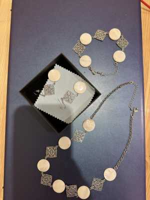 Нежный и красивый набор из перламутра: колье, серьги, браслет.