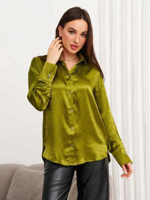 Зеленая нарядная атласная блузка. Сочетает в себе деловой и неформальный стиль. Сочетается с юбкой и брюками.