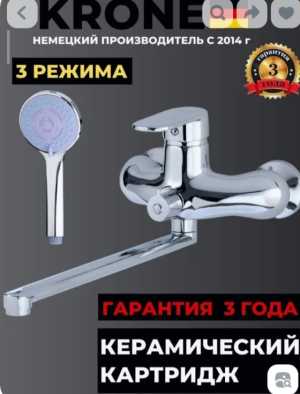 Смеситель для ванны, новый, латунь, наружный, на стену, межосевое расстояние - 150 мм, управление рычажное, длина излива...